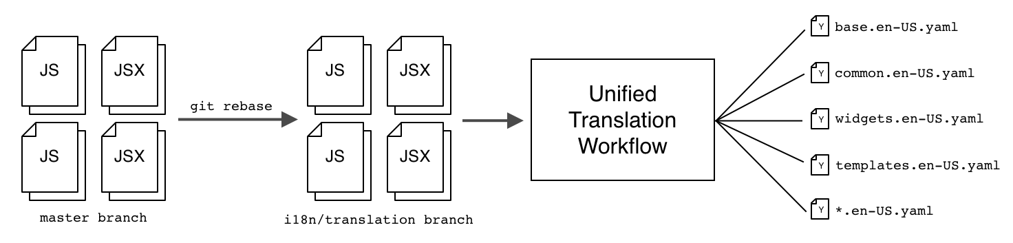 After wrapping the relevant English strings in translation helpers, those strings must be extracted from the codebase into the file format acceptable by our translation service, YAML. We’ve dubbed the process that runs this translation extraction the Unified Translation Workflow (UTW).