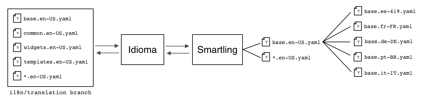 Idioma polls Smartling to detect when translations are complete in our target languages. It pushes any translated YAML files back to i18n/translation
