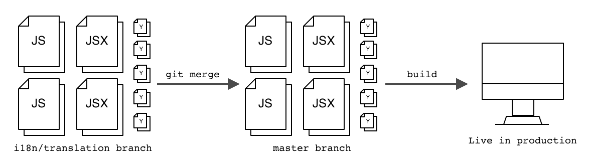 Once they’re ready to have their strings translated, engineers commit their code with translations directly to the master