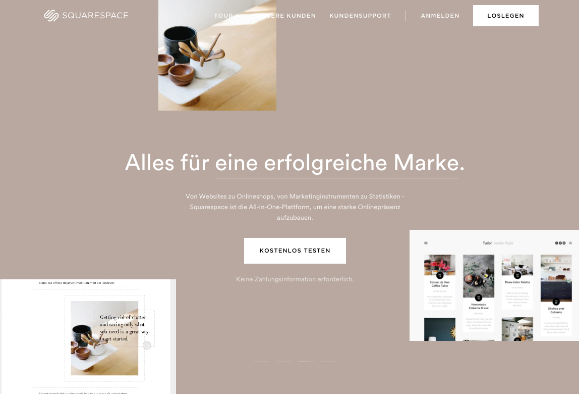 Squarespace homepage in German