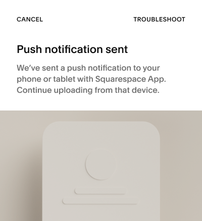 This button sends a push notification to the user’s Squarespace Mobile App, which asks the user to upload images from their Camera Roll.