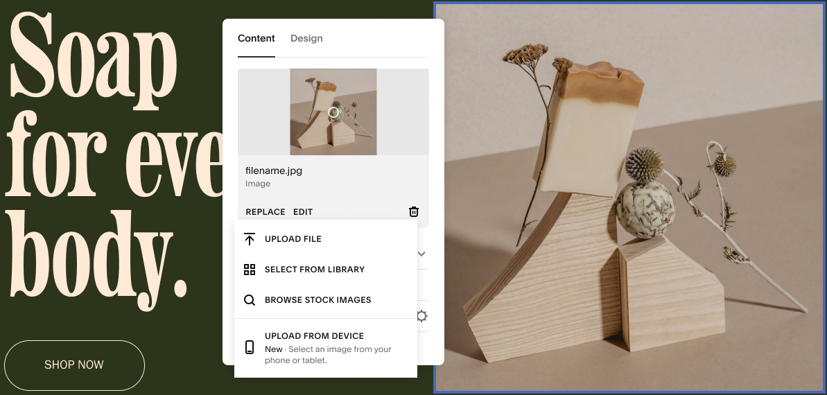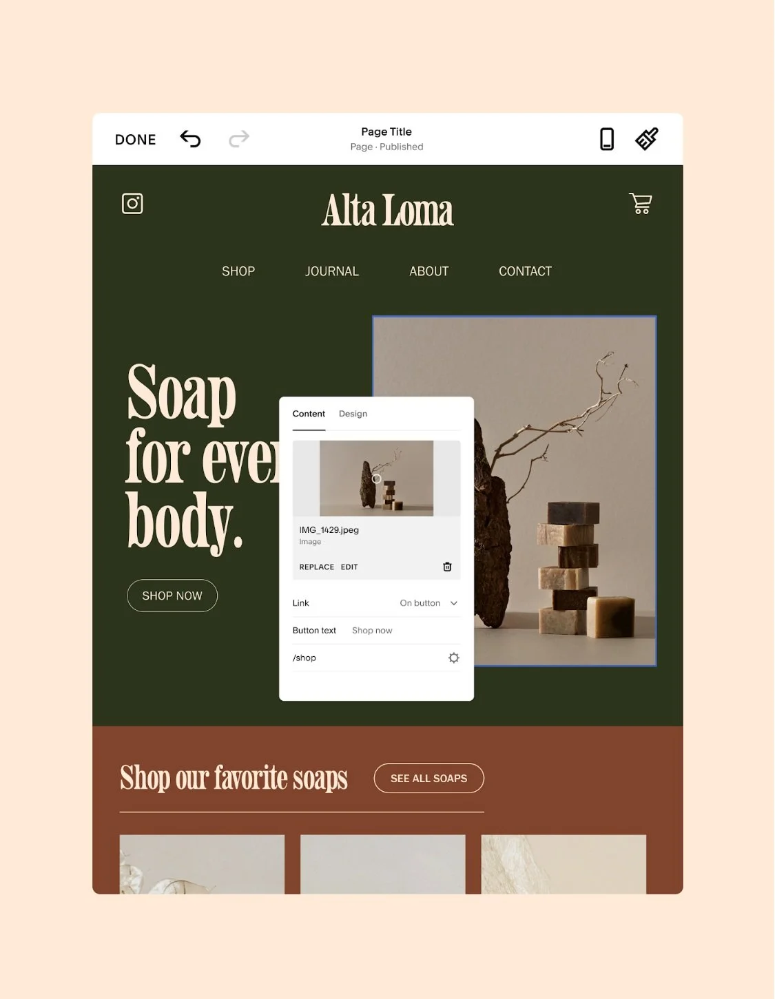The Squarespace editor in desktop web browser