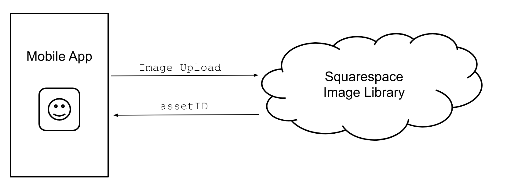Schematic diagram of the Mobile App communicating with the Squarespace Asset Library